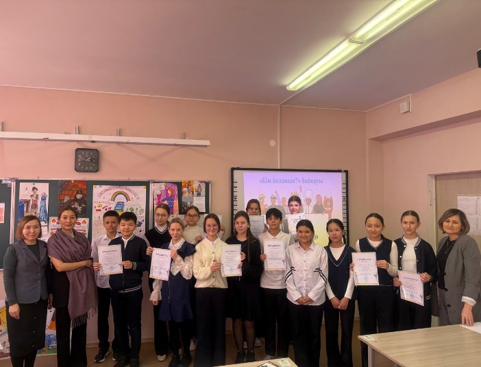 Оқушылар болашақ мамандыққа деген өз көзқарастарын үлкен қызығушылықпен ұсынып, шығармашылық қабілеттері мен қиялдарын, өмірлік жолды саналы түрде таңдауға деген ұмтылыстарын көрсетті. Байқау адал еңбекке, жауапкершілікке және кез келген мамандыққа құрметпен қарау құндылықтарын қалыптастыруға ықпал етті.