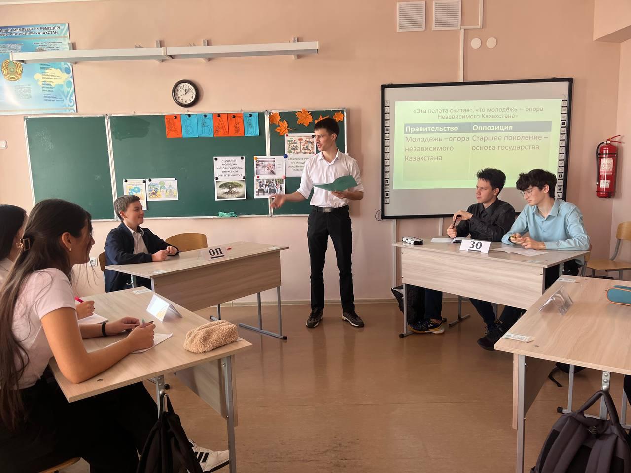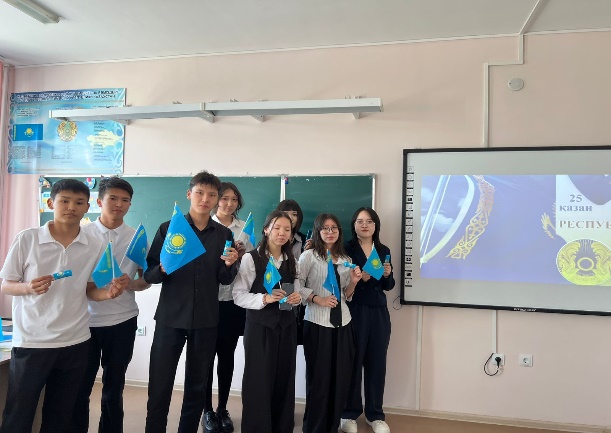 Бүгін 10–11 сынып оқушылары арасында Республика күніне арналған «Тәуелсіздікке саяхат» атты үстел ойыны форматында сыныптан тыс іс-шара өтті. Іс-шараның мақсаты – оқушылардың ел тарихына деген қызығушылығын арттыру, отансүйгіштік сезімін қалыптастыру және тарихи білімдерін тереңдету. Іс-шараны тарих пәні мұғалімі Жумабаева Айдана Жангалиевна ұйымдастырды.