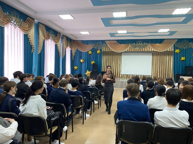 Толығырақ...22 сентября в школе проведена лекция «Формирование религиозной грамотности и развитие межэтнического и межнационального согласия» психологом общественного объединения «Социум и Я» Руди И.Б. с учащимися 10-11 классов. В ходе диалога прошел обмен мнениями по вопросам толерантности, космополитичности, уважения религий. Вместе с тем Руди И.Б. ознакомила детей с существующими деструктивными религиозными объединениями, как противостоять вовлечению в их деятельность.
